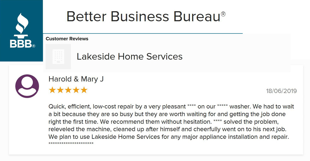 Our family recently had appliances installed by Lakeside Home Services and were pleased with the work completed by Jake and his staff. The estimate was detailed with a listing of all parts required and a clear outline of the work to be completed. The estimate matched the final bill – with no surprises.